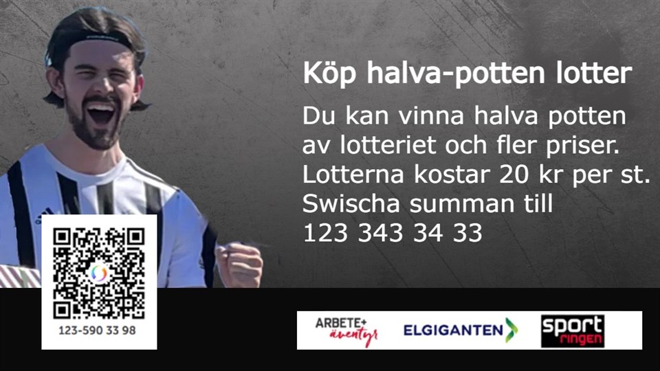 Uppdatering av halva potten lotteri. Du får chansen att starta semestern med extra pengar. Du kan vinna halva potten av summan som vi får in på lotteriet samt extra priser från våra sponsorer. 1a pris Halva potten av lotteriet 2a pris Filt, pläd, värde 450 kr 3e pris Bag, Adidas, värde 399 kr 4e pris Cromecast, värde 369 kr 5e pris Kylbag tyg MSSK, värde 100 kr Så här går det till: Lotterna kostar 20 kr per st. Du köper lotterna genom att swischa summan för en eller flera lotter till 123 590 33 98, märk "Halva potten lotteri" eller använd QR-kod. Varje 20 kr blir en lott. Dragning görs 28 juni, 17.00. Vinnarna presenteras på match mot Öjebyn. När du swischar oss får vi ditt namn och telefonnummer och kan även kontakta dig för att meddela vinst. När du swischar står det "MSSK Dam", det är dock MSSK herr som står bakom lotteriet. Varje vecka kommer vi att uppdatera er hur stor halva potten är. Lycka till