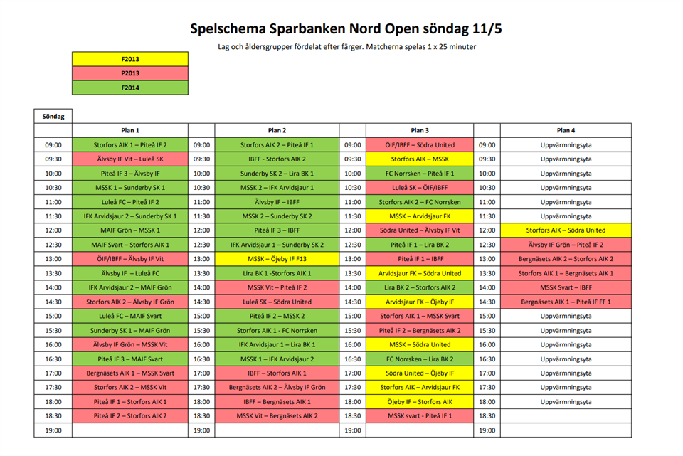 Samling kl 13:20 för båda lagen inför första matchen. Lag Svart Sam Espen Jack W Elis N Ebbe Ryan Charlie WS Sixten Malte Lag Vit Frans Johannes Lucas Carl Oskar Elis H Jack ÖK Tobias Matchtider 14:00 MSSK Vit - PIF 2 14:00 MSSK Svart - IBFF 15:00 SAIK 1 - MSSK Svart 16:00 ÄIF Grön - MSSK Vit 17:00 BAIK 1 - MSSK Svart 17:30 SAIK 2 - MSSK Vit 18:30 MSSK Vit -BAIK 2 18:30 MSSK Svart - PIF 1 Spelschema P-13 fotboll 8 maj 0kommentarer