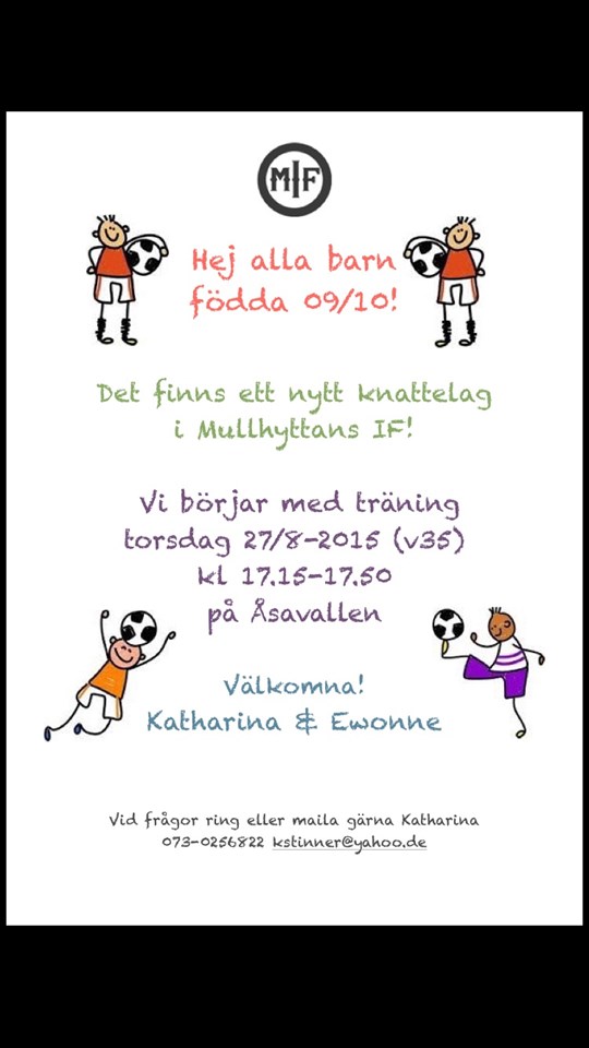 Den 27 augusti kl 17:15 har MIFs nyaste och yngsta fotbollsgrupp sin första träning. Alla barn, pojkar och flickor, födda 2009-2010 är varmt välkomna att testa om fotboll är något för dem. Ledare är Katti Stinner 073-025 68 22 och Ewonne Granberg.