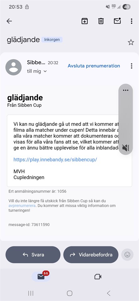 Klicka på bekräftelselänken i det mejl vi skickat dig för att börja ta emot uppdateringar från Myggenäs IBK P/F-14.