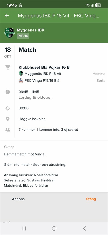 | Pixbo IBK P16 (hemma) | 8 nov, 09:45 |