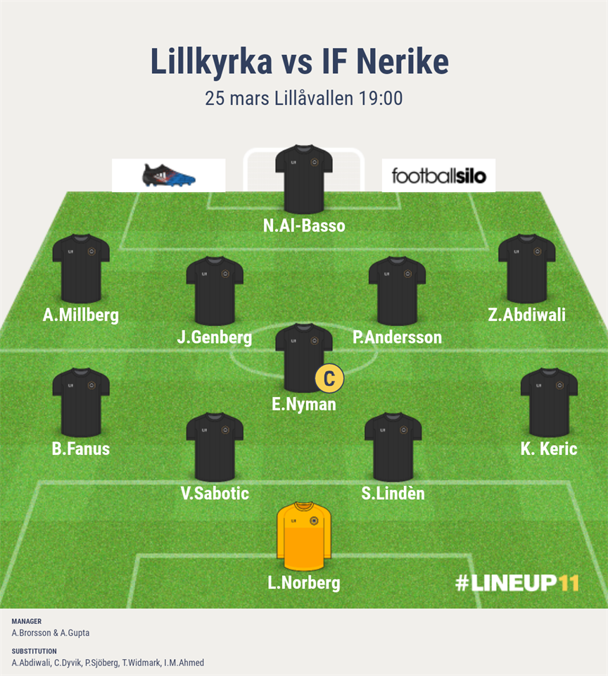Dagens startelva mot Lillkyrka. Fotboll A-lag 25 mar 2018 0kommentarer