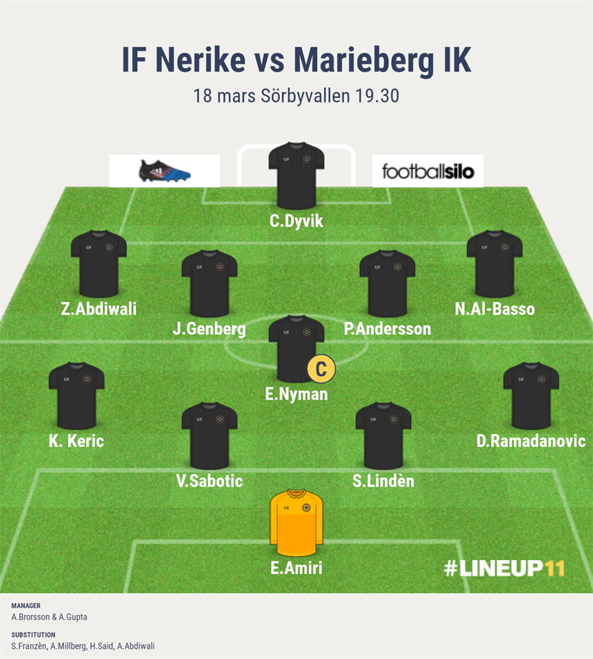 Nu är det dags för vår första tävlingsmatch för 2018. IF Nerike möter Mariebergs IK som spelar i division 5. Publiken är varmt välkomna till Sörbyvallen. Matchen startar 19.30. Följande spelare är uttagna: Målvakter Ludvig Norberg Elias Amiri Backar Dertil Ramadanovic Jason Wallberg Kristijan Keric Simon Lindén Vahid Sabotic Mittfältare Abdullahi Abdiwali Anton Millberg Edward Nyman (Kapten) Jacob Genberg Nawar Al-Basso Patrik Andersson Zakaria Abdiwali Anfallare Christian Dyvik Herman Said Fotboll A-lag 16 mar 2018 0kommentarer