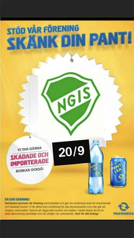 Hej! Söndagen den 20/9 är det dags för höstens Panta Mera. Samling på Hammarvallen kl 10.00. Medtag reflexväst och handskar. Som vanligt ju fler vi blir, ju roligare (smidigare) blir det. Efter insamling sker sortering av burkar/petflaskor vid stugan. Grillen är igång och korv serveras efter slutfört uppdrag. Anmäl under nyheten vilka som kommer, även ett gäng vuxna behövs. Vi behöver även en släpkärra, är det någon som tillgång till det, anmäl under nyhet - gärna med hög kant. Inför detta behövs även flyers delas ut i brevlådor på vårt tilldelade område senast 16/9. Frivillig till uppdraget? Hoppas vi får en härlig Panta Meradag och att vi ses där! NGIS mössan kommer att finnas till försäljning.