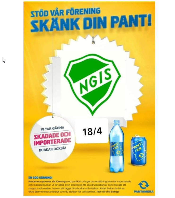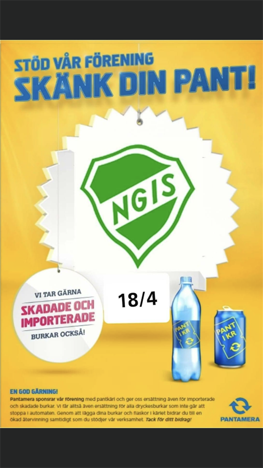 På lördag finns det möjlighet att stödja NGIS då samtliga lag från barn & ungdom kommer att samla in pant, precis som vanligt, fast vi håller avstånd. Ni som vill stötta oss med er pant får gärna ställa ut så underlättar det vår insamling. Tack på förhand för Ert stöd ♻☀⚽