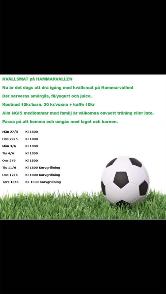 Välkomna och ät kvällsmat på Ngis. Den 12/6 är det F04-06 som ansvarar för korvgrillningen. Är det någon, gärna 2 av er föräldrar som har möjlighet att hjälpa till? Tack på förhand, er hjälp uppskattas! Meddela nedan snarast om ni har möjlighet att vara lagets grillmästare.