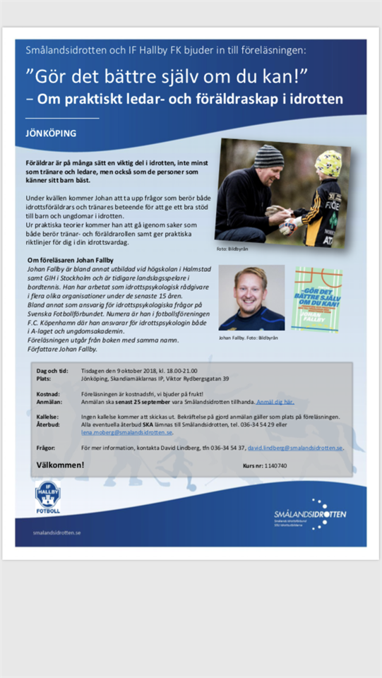 Om ni är intresserade finns det möjlighet att delta på en kostnadsfri föreläsning den 9/10. Se info ovan. Vid intresse för att delta gör er anmälan nedan. Damlaget 4 sep 2018 0kommentarer