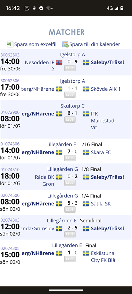 Lysande resultat från Skadevi Cup som spelats nu i helgen! Jag vet inte om det finns fler resultat att redovisa, men nedanstående hittade jag i varje fall. (Kommentera och hänvisa om jag missat något!) Saleby/Trässberg/N.Härene P14 (P08/09): 1:a, efter seger med 1-0 mot Eskilstuna City FK Blå i finalen. - Alla Matcher P14 Saleby/Trässberg/N.Härene P13 (P10/11): 2:a, efter förlust med 2-4 mot FC Real Internacional i finalen. - Alla Matcher P13 Norra Härene BK 3 jul 2023 0kommentarer