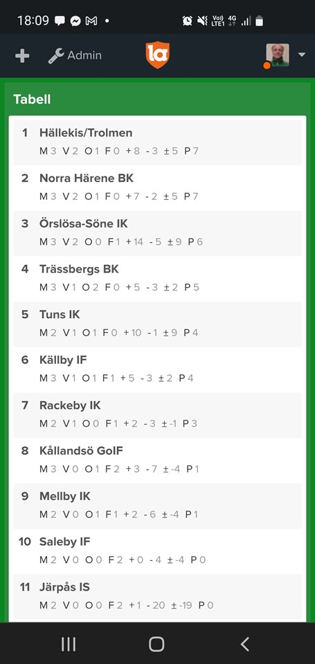 Tabellen börjar sätta sig efter tre omgångar. Norra Härene BK 8 maj 2022 1kommentar