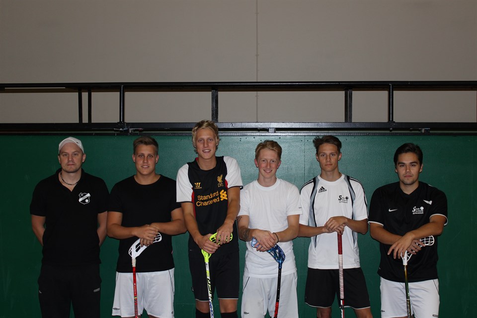I år har vi fått ny påfyllnad från Forserum, Crona o Co. har lockat med sig flera duktiga spelare. I år står Christian Svensson som ensam tränare för laget, efter att ha gått bredvid under förra säsongen. Crille har dock tränarerfarenhet sedan tidigare, förra säsongen tränade han vårt P97/98-lag. Han har även varit tränare för bl.a. Damlag, och juniorlag i andra föreningar. I år kommer Crille även ha huvudansvaret som tränare för div-4-laget samt laget i juniorallsvenskan. Till sin hjälp har han lagledare runt lagen. Vi önskar Crille stort lycka till, och vi välkomnar alla nyförvärv till klubben! På bilden syns från vänster Christian Svensson tränare, Marcus Gustavsson forward, Andreas Andersson back, Marcus Johansson forward, Lukas Bäckström forward, Rickard Eklöf back. Saknas på bilden gör Oscar Wassborg målvakt samt Jacob Johansson forward.