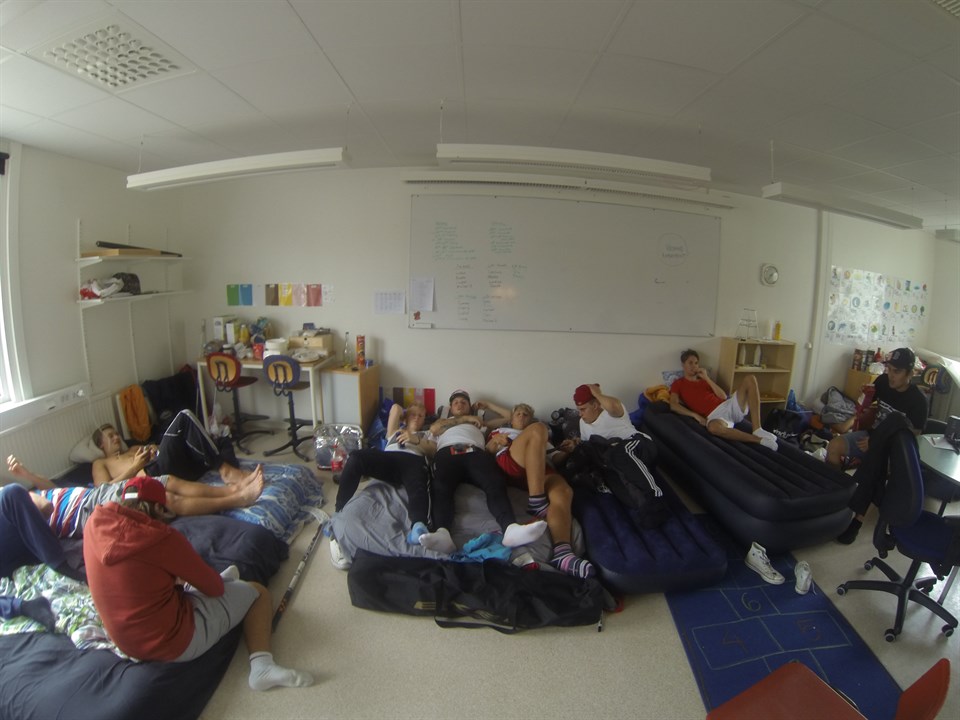 På plats på öland är det vila mellan träningspassen. efter två bra träningar och mycket genomgångar så skall vi strax gå ner o köra ett pass till då blir det mycket spel. saknas endel i truppen denna helgen men vi har fyllt på med bra lirare, Abbe från ett ungdomslag ställde upp med kort tid när målvakterna gick sönder innan avresa. Imon gör vi premiär med match mot Färjestaden och deras div2 lag. tack o adjö..