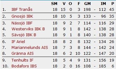 På söndag är det dags för omgång 16 och det är IBF Tranås som står för motståndet. Veckan träning har sett bra ut och vi har kunnat träna mycket match situationer med bra kvalité I truppen saknas Anton som på senare tid gjort många mål och spelat riktgit bra.Bjrön lundberg Jonas Strandh Roger Swärd, Motin är skadad och finns ej med.det är ett par gubbar som vanligtvis bidrar med mycket för laget. Men vi har gubbar som täcker o sliter för deras skull. Men åter i laget kommer Linné in som varit iväg på danskurs i Estland. Senaste Matchen han spelade lossnade de rejält och han satte 3 kassar. hoppas kursen gjort mera gott för han och han visar vägen o vi dansar hem matchen. Viktigt i matchen mot Tranås är att vara vakna o vara på rätt sida hela tiden. Tranås har många bra spelare i sitt lag, många med erfarenhet från högre divisioner. men vi är också ett mycket bra lag. o vi kommer att sälja oss väldigt dyrt i Tranås Idrottshall. Laget ser ut på följande sett: Alexander Runbom Marcus Pettersson Glenn Svensson Viktor Mörberg Anders Fröderberg Erik Schöld Alexander Linné Lucas Granström Mikael Svensson Viktor Ylenfors Tim Klasson Alexander Johansson Marcus Eriksson Cliff Svensson Pierre Gundersen Ledare: Anderas Karlsson Jonas Karlsson Fredrik Jansson Samling klockan 12.45 vid södra torget för avfärd mot Tranås