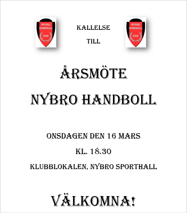 Kallelse till Årsmöte 2016 Nybro Handboll 29 feb 2016 0kommentarer
