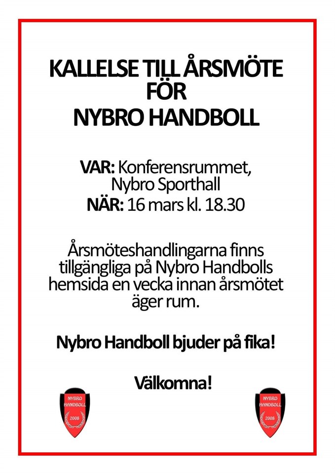 • Nybro Handboll bjuder in till årsmöte!