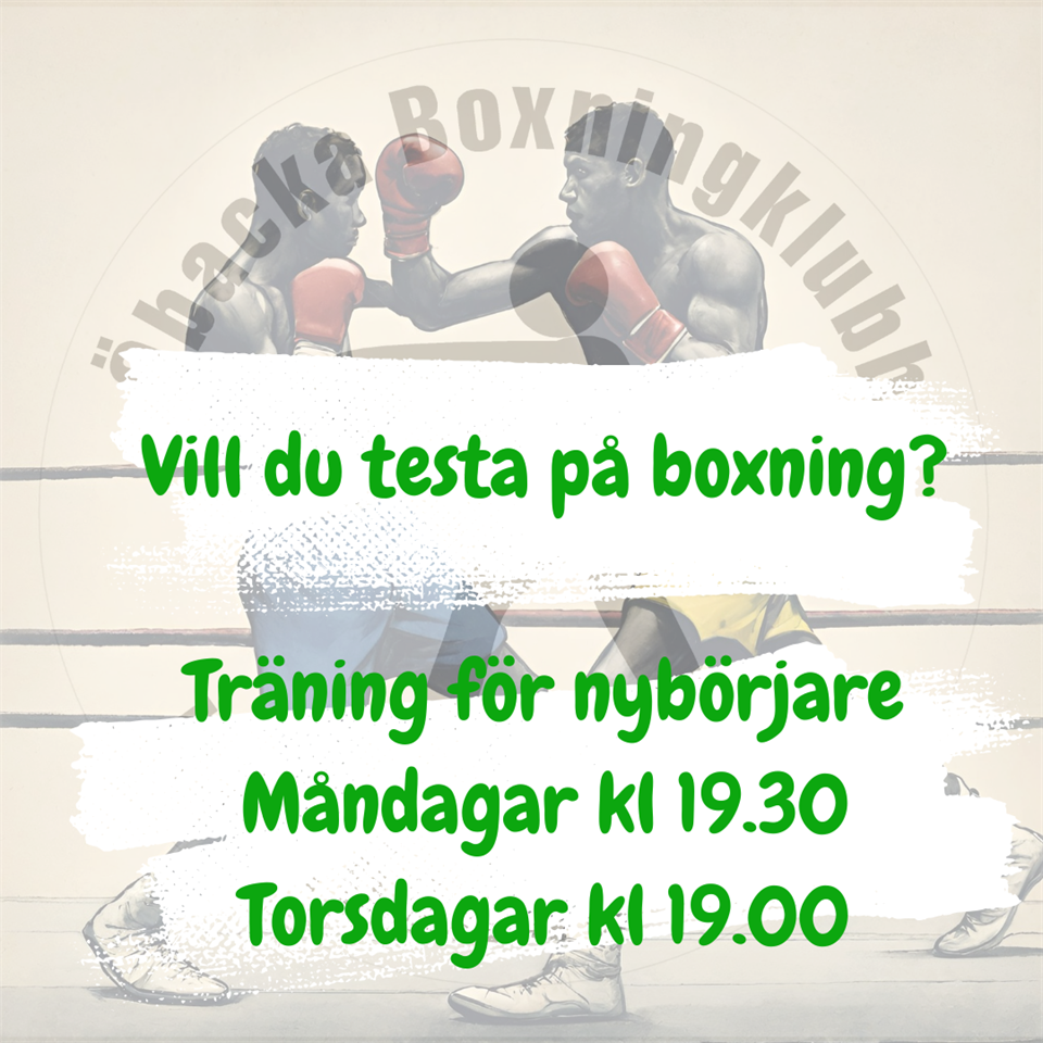 Hej, dela gärna i era sociala medier att vi har nybörjarpass på måndagar och torsdagar. Hälsningar Styrelsen Öbacka Boxningsklubb 27 nov 2024 0kommentarer