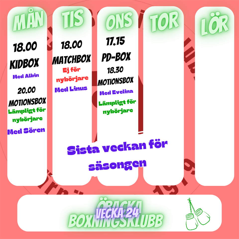 Tack Sverige för det du gör för oss, dess medborgare, som får leva i fred och har möjligheten att välja våra egna vägar i livet. Tack för vår idrottsrörelse som ger gamla och unga möjligheten att röra på sig och följa sina idrottsliga drömmar! Tack till er, våra medlemmar för att ni berikar vår klubb med ert medlemskap. 💫 Idag är det Sveriges nationaldag, en dag som ska firas. Vi önskar alla en fin dag och ber er minnas att inte köra om ni har druckit alkohol. Drick inte när du har barn omkring dig, barnet ska kunna känna sig tryggt i miljön den befinner sig i och vuxna är de som ska skänka trygghet. Ha roligt, skratta mycket och hissa gärna en flagga om ni har den. Klubben är stängd idag men vi kör nästa motionspass på lördag och laddar sedan för nästa vecka, som blir den sista innan sommaruppehållet. #öbackabk Öbacka Boxningsklubb 6 jun 2024 0kommentarer