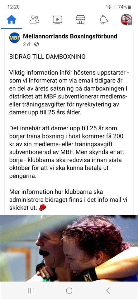 Tjejer se hit! Genom MBF kommer vi kunna erbjuda alla tjejer som blir nya medlemmar, mellan åldrarna 12-25, en subvention på träningsavgiften denna säsongen! Detta innebär att ni får 200 kr "rabatt" på er avgift. Så exempelvis ni som är upp till 15 år betalar istället för 900 kr/år endast 700 kr/år. Ni som är upp till 25 betalar istället för 1100 kr/år bara 900 kr/år. Vi kommer arrangera två tillfällen för att testa på (enbart tjejer) där det första tillfället är tisdagen den femte september kl 19.30. Tränare för detta passet kommer vara Jossan Nordén 💥 Inga förkunskaper krävs! Vill ni har mer information eller undrar över något annat rörande träningen, kontakta huvudtränare Linus på 0763053844 eller mejla boxningharnosand@gmail.com. Varmt välkomna! #fightlikeagirl #ÖbackaBoxningsklubb #härnösand Öbacka Boxningsklubb 30 aug 2023 0kommentarer