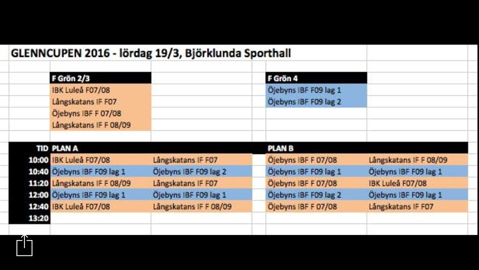 Hej! Den 19/3 spelar vi Glen cupen i Öjebyn. Vi kommer att göra arbetspass under den dagen. Kiosk/hamburgeriet/bakning. Fördelningen av passen kommer senare. Nu vill jag veta vilka som kan vara med. Skriv i kommentarer om du kan spela. Hoppas att alla kan vara med, vi gör cupen som en avslutning av sesongen. / Ledarna F-0708 2 mar 2016 11kommentarer
