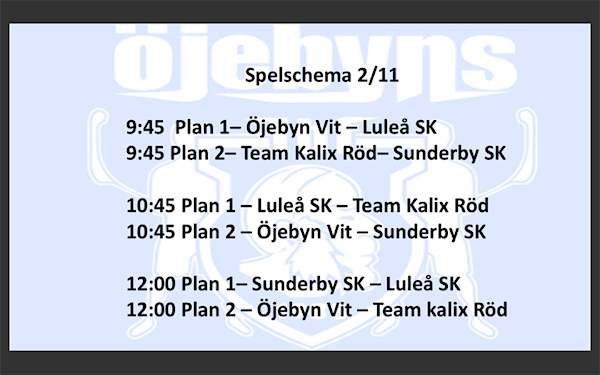 Här kommer spelschemat för söndagens drabbning i Björklunda sporthall.