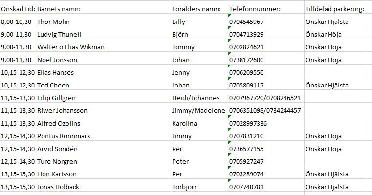 • Parkeringsvaktsschema Mickelsmäss