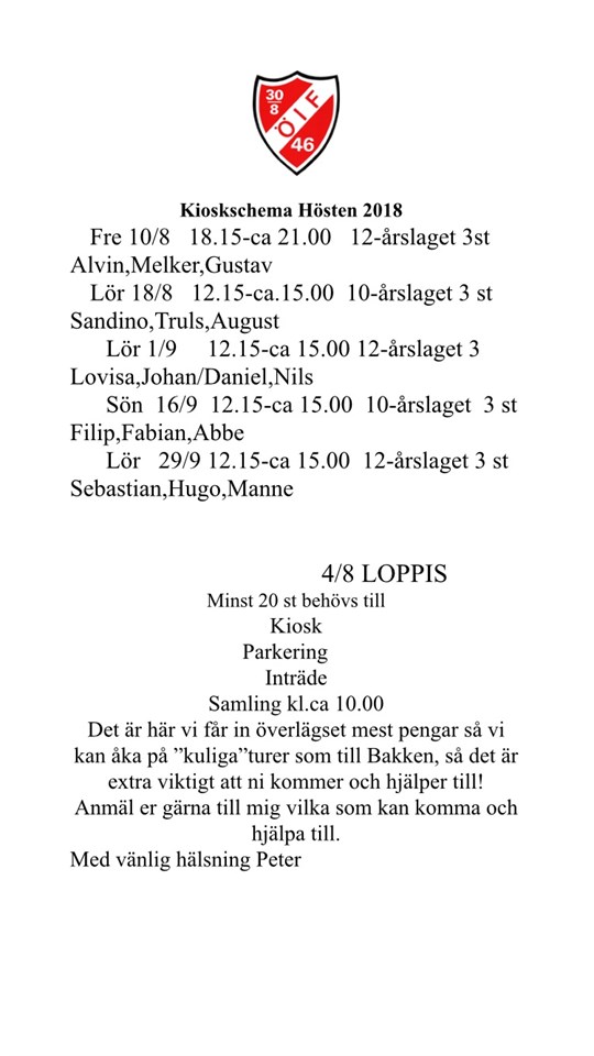 Kioskschema hösten 2018 Barn födda: 2015 - 2017 8 jul 2018 0kommentarer