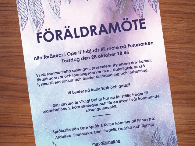 Föräldramöte för hela Ope IF imorgon 28/10