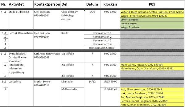 Här kommer årets aktivitetsschema eventuella byten sker mellan er föräldrar.