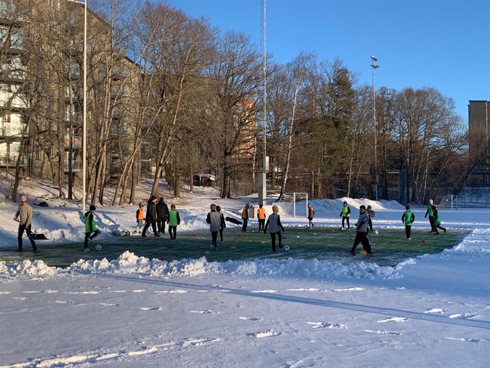 Vi kommer att köra ute så ofta vi kan med hänsyn till väder och vind. Senast kl.15 samma dag kommer vi att meddela er ifall träningen ställs in. Är det snö på plan så hoppas vi att det finns föräldrar som kommer och hjälper oss att skotta!