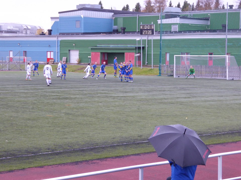 Med bara 11 man lyckades vi kryssa mot serietrean efter en gedigen laginsats. Startelvan MV: Johan Karpmyr HB: Jonny Videhall MB: Erik Tjäder MB: Johan Johansson VB: Niklas Nutti HM: Simon Rönnqvist CM: Robert Unga CM: Aslak Allas VM: Jakob Rovik FW: Lars Ökvist FW: Nils Johanas Allas På bänken fanns: Inga avbytare Matchen Som väntat inleds matchen med ett kraftigt bollövertag för Lira. Vi fokuserade på att ligga rätt i positionerna och vara agressiva i våra egna zoner. Lira skapar dock flera farligheter men vi lyckas värja oss gång på gång. Efter ett par minuter höll Lira på att nicka in bollen på en hörna men Robert Unga stod välplacerad på mållinjen och nickade iväg bollen. Lite senare hade Lira en boll i stolpen samt en nick där Karpmyr gör en bra räddning och styr bollen över ribban. Samtliga på arenan trodde nog att Lira som skulle ta ledningen vilken minut som helst. Vi var dock riktigt aggressiva när vi såg att vi hade chansen att sno bollen och ställa om. Inledningsvis slarvade vi med den sista passningen och vi kom inte till några vidare chanser men det blev bättre efter ett tag och Löken och Nils Johanas lyckades ställa till med oreda för Liraförsvararna. Under en period gick Lira ner sig lite och deras anfall blev inte alls lika farliga. I matchens 28:e minut får vi frispark 23-24 m utanför Liras straffområde efter att vi höll på att rinna igenom deras försvar. Frisparken slår Niklas Nutti hårt och med precision rätt upp i krysset. Ett riktigt snyggt frisparksmål! Simon Rönnqvist hade också ett skott utifrån som fick en konstig bana och tog i underkanten av överliggaren och Lira kunde rensa iväg returen. Mot slutet av halvleken lyckades Lira både kvittera och ta ledningen. Båda målen kom på frisparkar som de lyfte in mot bortre ytan där de var mycket hetare än oss och nickade in bollarna rätt enkelt. I halvlekens sista minut får vi frispark långt ut på vänsterkanten. Niklas Nutti lyfter in den mot Löken utanför straffområdet som går upp i duell mot sin mittback. Bollen går förbi dem och Nils Johanas är på språng och hinner ikapp bollen innan den går utanför kortlinjen. Han spelar den snett inåt backåt mot Löken som kommer rusande. Avslutet går över men domaren står bra placerad och dömer straff då han ser tröjdragningen på Löken som fick han ur balans. Aslak stegar fram men slår straffen utanför. Resultatet, 2-1, står sig till halvtid. I andra halvlek fortsätter bollövertaget för Lira men nu är de inte lika farliga i sina anfall. Det är oftast Liras snabba anfallare, Jesper Robarth, som får driva bollen mot vårat försvar. Här gör vi det bra och Johan Johansson lyckas flera gånger styra bort Robarth med inspark som följd. Spelet var under en period väldigt böljande och det var knappt något spel genom mittfältet. Löken och Nils Johanas gör ett bra jobb och vinner i princip alla luftdueller trots hårt motstånd från Liras backlinje. De hade också ett bra samarbete då en av dem alltid gick på djupet. Löken har bland annat två frilägen men gör två bra benparader och ställningen står sig. Vi har också ett par hörnor som blir farliga. Mot slutet skapar Lira ett par riktigt vassa lägen men den assisterande domaren vinkar offside på samtliga. I matchens 88:e minut får vi en hörna som återigen blir farlig. Bollen går igenom straffområdet och Simon avslutar från bortre delen. Målvakten räddar men Nils Johanas fläker sig fram på returen och slår in bollen. Lira flyttar fram och går för seger men vi försvarar oss bra och matchen slutar 2-2. Summeringen Det såg mörkt ut på lördagmorgonen då vi fick tre återbud innan avresan. Det var också länge oklart om Nils Johanas kunde ta sig över Torneträsk från Kattuvuoma pga det blåsiga vädret. Vi visste att det skulle bli en jobbig match men med både tur och skicklighet lyckades vi hålla undan Liras många anfall. Med lite mer skärpa från deras sida hade matchen kunnat sluta helt annorlunda. Under stora delar av matchen ligger vi dock rätt i positionsspelet och trots att Lira har mycket boll så skapar de inte så mycket som man tycker att de borde ha gjort. I andra halvlek är det vi som har de farligaste chanserna och det är inte orättvist att vi får in den boll på slutet. Samtliga spelare gör bra en bra match idag och det känns skönt att avsluta säsongen med en riktig laginsats som visar varför vi kallas för Starka Parka. Statistiken Min 28: 1-0 Niklas Nutti Min 37: 2-0 Jesper Robarth Min 40: 2-1 Markus Isaksson Min 88: 2-2 Nils Johanas Allas Gula kort: Jonny Videhall (PIK), Aslak Allas (PIK), Johan Johansson (PIK)