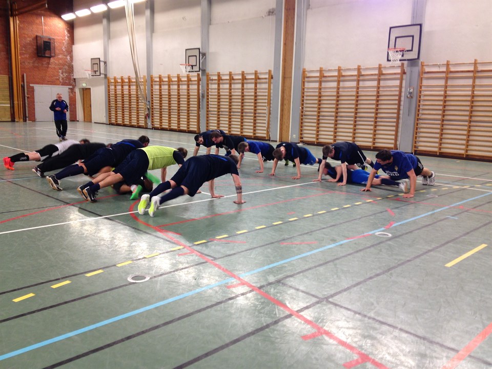 I tisdags hölls ett informationsmöte med efterföljande träning där 19 spelare deltog. Tilläggas skall att ~10 spelare var frånvarande pga resa, jobb, flytt och sjukdom. Parka kommer att träna 2-3 gånger i veckan och det blir både fys, löpning och fotboll. Under torsdagens träning fick Börje chansen att plåga spelarna. (Se bilden) Truppen är i princip intakt från förra året och under vintern har ett flertal nya spelare tränat med Parka. Under januari och februari kommer det att utkristallisera sig vilka som är beredda att vara med under en hel säsong. Klart är iaf att det blir en stark trupp! Under Januari kommer vi att börja presentera vilka spelare som skall försvara Parkas färger 2014, så glöm inte att besöka hemsidan eller Facebook-sidan (http://www.facebook.com/parkalompoloik)