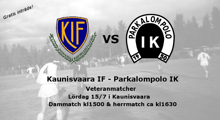 Idag är det dags för de årliga veteranmatcherna mellan ärkerivalerna Parkalompolo IK och Kaunisvaara IF! Seriefinalen i Malmfältserien 1971 åskådliggör hur jämnt det har varit i kampen mellan lagen. Trehundra personer gick man ur huse för att vara med om drabbningen. Parka behövde seger för att flyttas upp till div 4, för Kaunisvaara räckte oavgjort, det blev 2-2 och Kaunisvaara gick för första gången upp i div 4. Förra året spelades matchen i hällregn på Palovallen. PIK vann med 2-1 efter mål av Per-Ola Lund och Leif-Åke Lund. Kaunis mål gjordes på straff av Mikael Strand.