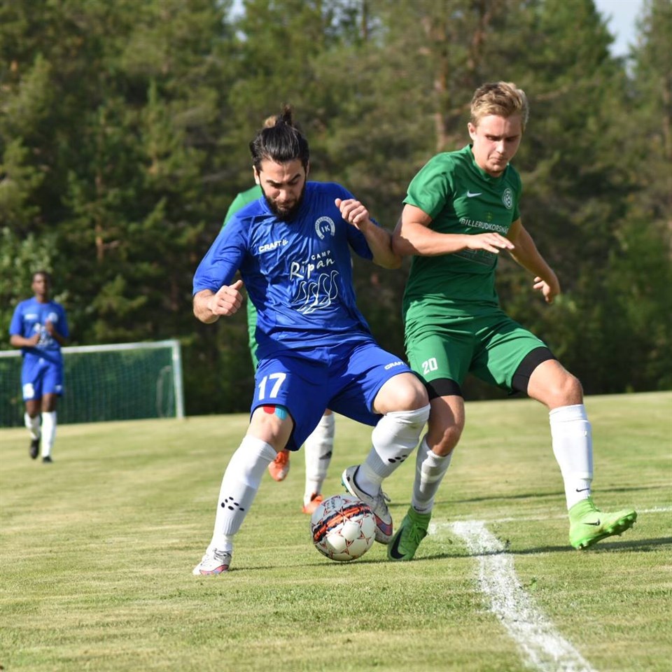Bortamatchen mot tabelljumbon Pajala/POAFF2 spelades på Karlavallen i Junosuando. Gräsplanen var riktigt bra men vädret desto sämre. Under uppvärmningen drog ett kraftigt regn- och åskväder förbi vilket fick den anländande publiken att packas ihop under läktartaket. Vädret kom dock att bli bättre ju längre matchen led. Det här var en match som vi bara var tvungna att vinna med tanke på tabelläget men vi underskattade verkligen inte motståndarna. Inledningsvid var planen något svårspelad i regnet och vi fick inte riktigt något flyt i spelet. Jobbet var det dock inget fel på och det var mycket kamp på banan. Vi hade dock kommandot men saknade den sista lilla skärpan för att skapa riktigt vassa målchanser. Omar hade ett halvvolley skott som gick tätt över och vi hade två-tre hörnor där Mörtberg och David nickade strax utanför. Bakåt kändes det relativt tryggt men Pajala/OAFF fick sticka upp mer och mer ju längre halvleken led. I halvlekens sista minut får Pajala/OAFF en kontring efter ett misslyckat utkast och en av deras spelare fälls inanför straffområdet. Domaren blåser helt korrekt straff. Adam går åt rätt håll men straffen är hård och går rätt upp i krysset. Underläge 1-0 i halvtid - surt! I halvtid trycker vi på att det bara är att fortsätta jobba och minimera misstagen. Vi sätter också Jonny Videhall på högerbacken där han spelat bra förut. När vi kommer ut till andra halvlek har det både ljusnat och slutat att regna. Vi återtar kommandot i andra halvlek, men Pajala/OAFF utnyttjar ett misstag och får en kontring. Avlsutet tar på Adam och går i stolpen. Returen slår en fri Pajala-spelare in men målet döms bort för offside. Vilken lättnad! Vi trummar på och i matchens 57:e minut får vi en vänsterhörna. Jonny Videhall slår den lågt och hårt. Det ser ut som det skall bli en misslyckad hörna men den rinner förbi första stolpen.. målvakten.. och träffar borte stolpen och går in. 1-1. Nu släpper nervositeten och vi börjar att spela ut samtidigt som Pajala tröttnar. Jonny Videhall är strålande på högerbacken och kommer fram anfall after anfall. Ett par minuter senare så väggar han sig fram och blir tacklad när han skall skjuta strax utanför straffområdet. Löken slår frisparken med en hård och behärskad bredsida och bollen går in vid stolpen. Strax därefter får vi ytterligare en frispark, denna gång längre ut från högerkanten. Jonny V slår den hårt, flackt och inåtskruvat. Banan blir perfekt och söker sig mot den bortre stolpen. Jonny hinner ropa "släpp den" då han ser att den antagligen kommer att studsa in vid bortre stolpen. Men i högen av framrusande spelare får Simon Mörtberg en tå på bollen och skarvar in den. Vi fortsätter att skapa chanser och har flera inlägg från Jonnys högerkant. Vi har även några till hörnor som blir farliga. Mot slutet mattas vi dock av men i slutminuten gör vi 1-4 efter en snabb frispark av Mörtberg som hittar Omar på djupet. Omar slår in den framför mål där Hüseyin petar in bollen. I slutändan var det ett rättvist resultat med tanke på chanserna, speciellt som vi spelade i andra halvlek. Vi gör en bra laginsats idag men Jonny Videhalls insats på högerbacken får med beröm godkänt. De rutinerade spelarna gör vad som förväntas och en sån här match blev de numret större. Vattnet var avstängt på Karlavallen så vi kunde inte duscha. Kosan styrdes mot den närliggande sjön Isojärvi och dess badplats. Några trodde nog att vi skojade när vi sa att vi skulle bada i en sjö.. men när vi kom fram insåg det att det inte var något skämt. Sjön låg spegelblank och spelare efter spelare hoppade i för att samlas för ett lagfoto på hopptornet. Glädjen var stor och det är nå få saker som är så lagbyggande som sådana här ögonblick. Nu är det 1,5 vecka till nästa match då vi återigen möter Pajala/OAFF2, denna gång på Palovallen. Truppen: Adam Jamal, Younes Alhassan, David Gunillasson, Simon Mörtberg, Samuel Ftsum, Aslak Allas, Hassan Hosseini, Rami Sultan, Omar Alhassan, Edward Nguyen, Hüseyin Dag, Matcus Jönsson Åberg, Robert Unga, Lars Ökvist, Simon Rönnqvist, Jonny Videhall, Remy Lufakalyo. Målskyttar: Jonny Videhall, Lars Ökvist, Simon Mörtberg, Hüseyin Dag.