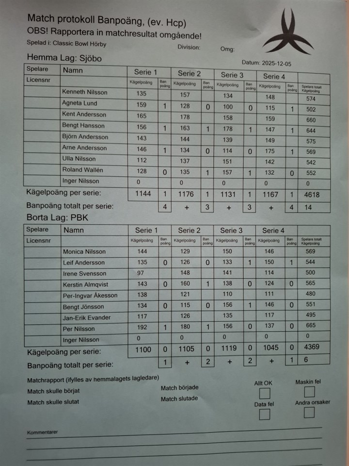 Följ oss för uppdateringar| PBK lag Knislinge PB 1 (hemma) | 12 nov, 10:40 |