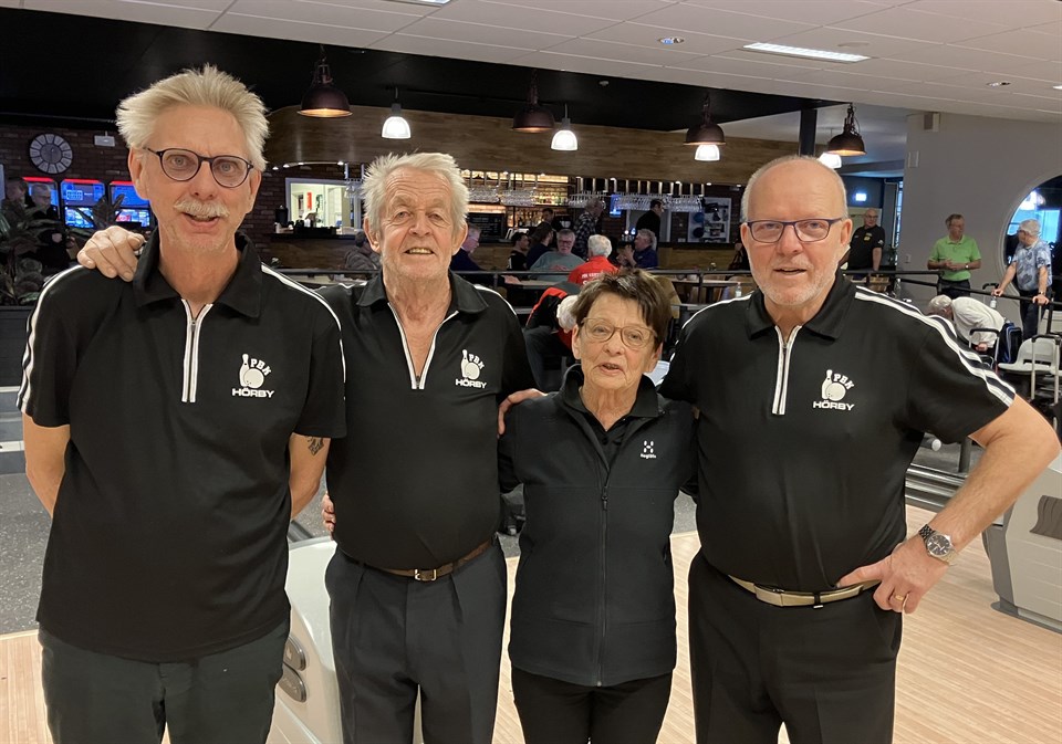Hörby 1 var nere på en femteplats i serien och nu var det dags att börja klättra några placeringar innan serien tar slut. Kristianstad som var dagens motståndare motsvarade inte förvänyningarna utan det blev en övertygande seger för Hörby som därmed passerade Kristianstad. En riktig kanonstart bjöd Hörby på när man gjorde hela 5-0 (1547-1219) i första. Sjönk med nästan 200 i andra men tog likväl 4-1. Tredje serien ökning igen till 1475 p och 5-0 och nu började det osa klubbrekord men fjärde serien blev ingen glädjeserie, visserligen 3-2 men bara 1384 i slagning. Slutresultat 17-3 (5767-4972). På bilden ser du Gunnar Sloberg 756 p, Bengt Pettersson 791 p, Eva Jönsson 693 p och dagens suverän Hans Lindblad 858 p.