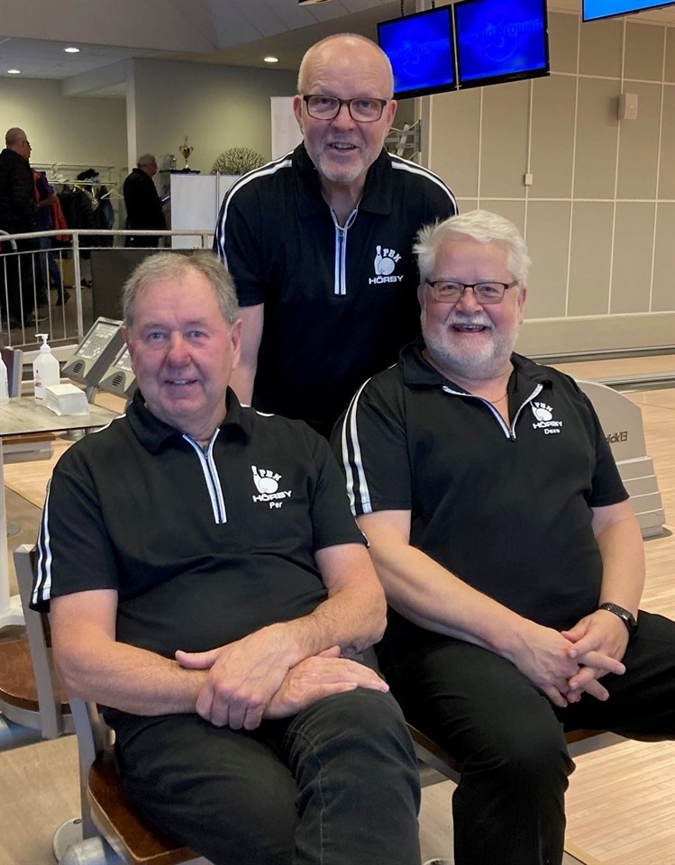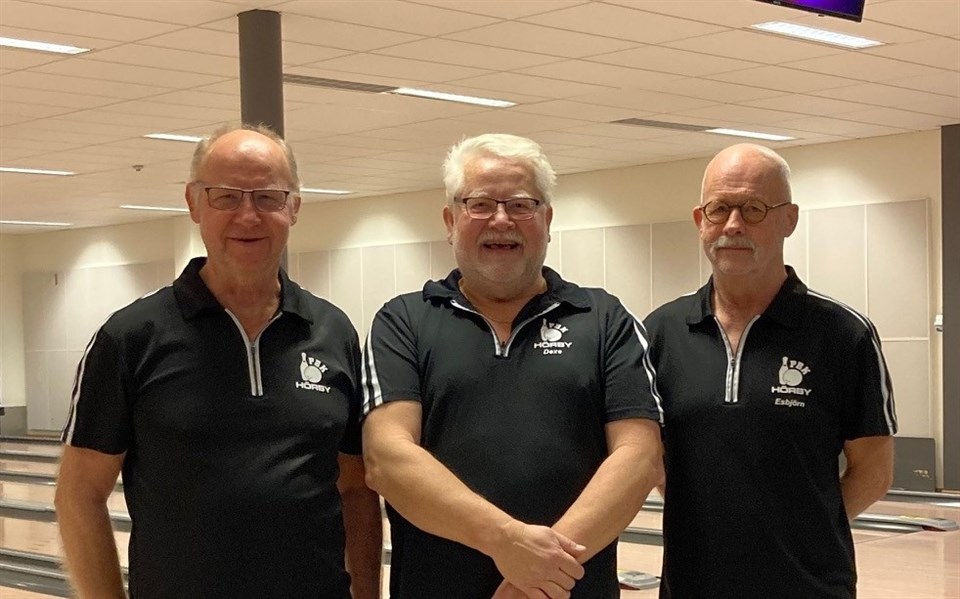 Vilken start på dagens match för Hörby 1 mot BBK Spärren P1. Bara 4 spelare hade mer än 137 i första serien och då förstår ju alla att vi inte nådde något resultat att skryta med. Trots detta vann vi serien med 20 p och 3-2 i matchpoäng. I andra ökade vi med 100 p och vann den med 5-0, samma sak i tredje förutom att vi ökade med 130 p. Efter tredje stod det alltså 13-2 och så blev det en rekyl i fjärde med sämre resultat igen men likväl seger med 3-2. Slutresultat 16-4 och 5361 - 4934. På bilden Bengt-Arne Rosenqvist 710 p, Bengt Dexe 766 p och Esbjörn Gärd 743 p. Bästa enkelserie hade Bengt Dexe med 254 p.
