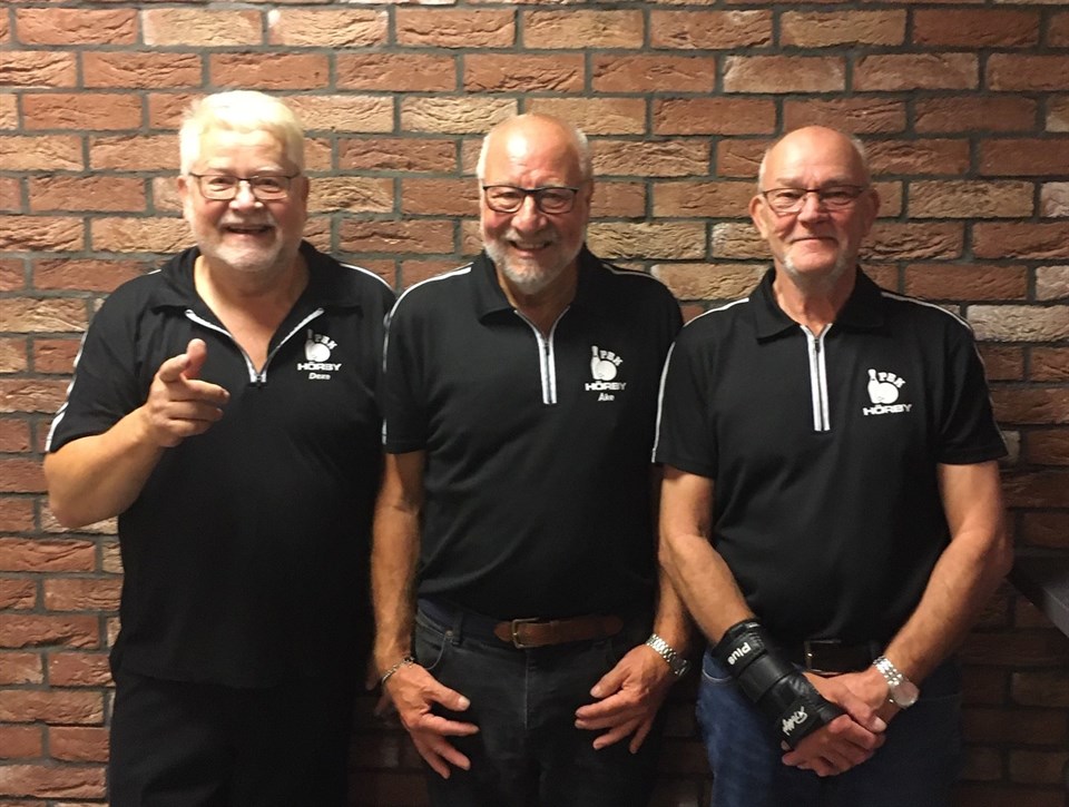 Andra veckans matcher var mellan Hörby 1 och BK Cefyra P1 och Hörby 3 motKnislinge PB 3. Eftersom alla matcher under året kommer spelas på hemmabanor så gjorde vi som så att lag 1 och lag 3 möttes mest för att vi skulle ha trevligt. Nu över till hur det gick i matcherna. Knislinge var oss övermäktiga och gjorde 4404 medan vi bara orkade med 4125 och alltså förlorade med 279 p. Det var nog lite premiärnerver för detta laget skall kunne prestera bra mycket mer, kanske redan på onsdag. Lag 1 hade ju match mot BK Cefyra P1 och vi har genom åren haft våra ups and downs men oftast har vi vunnit.Denna gångenpresterade Cefyra 5311 medan Hörby gjorde ett riktigt bra lagresultat men med plats för ökning i nästa match. Bengt Dexe toppade med 837 p följd av Erik Lindblad på 726 p. På onsdag kommer fler komma över 700 strecket. På bilden ser vi Bengt (837 p) bäst i lag 1, Åke (567 p) bäst i lag 3 och Erik (726 p) tvåa i lag 1. På onsdag är det match för Hörby 1 mot Markaryds PBK 1 kl 09.00, Hörby 2 spelar mot Markaryds PBK 3 också kl 09.00 och därefter spelar Hörby 3 mot PBK Tollarp 3 kl 10.40. Lycka till alla!!!!!!!!!