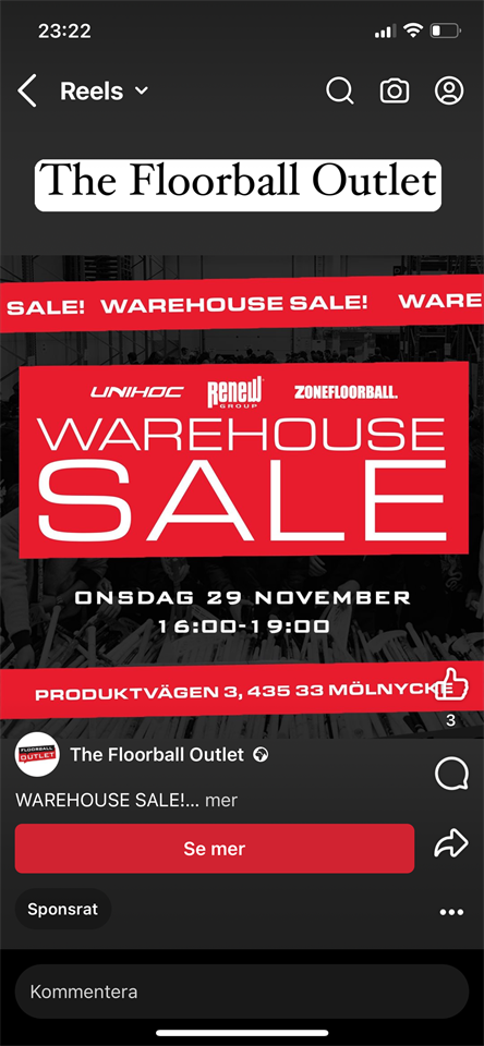 Onsdag 29/11 är det utförsäljning igen. Har ni behov av att komplettera målvaktsutrustningen eller behöver ni ny klubba, glasögon eller träningskläder så passa på!