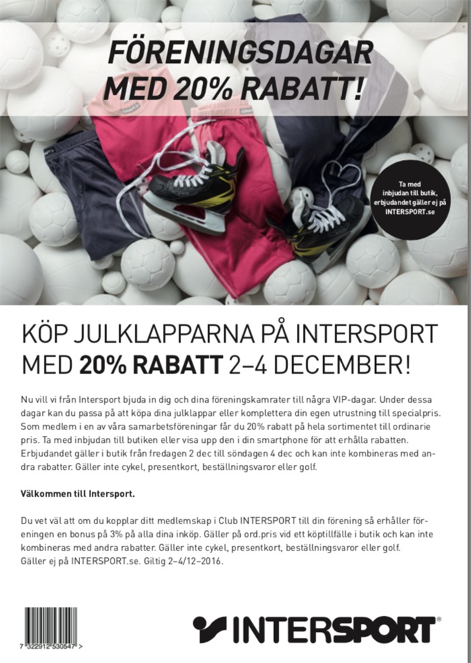 Medlemsdagar på Intersport P-03 1 dec 2016 1kommentar