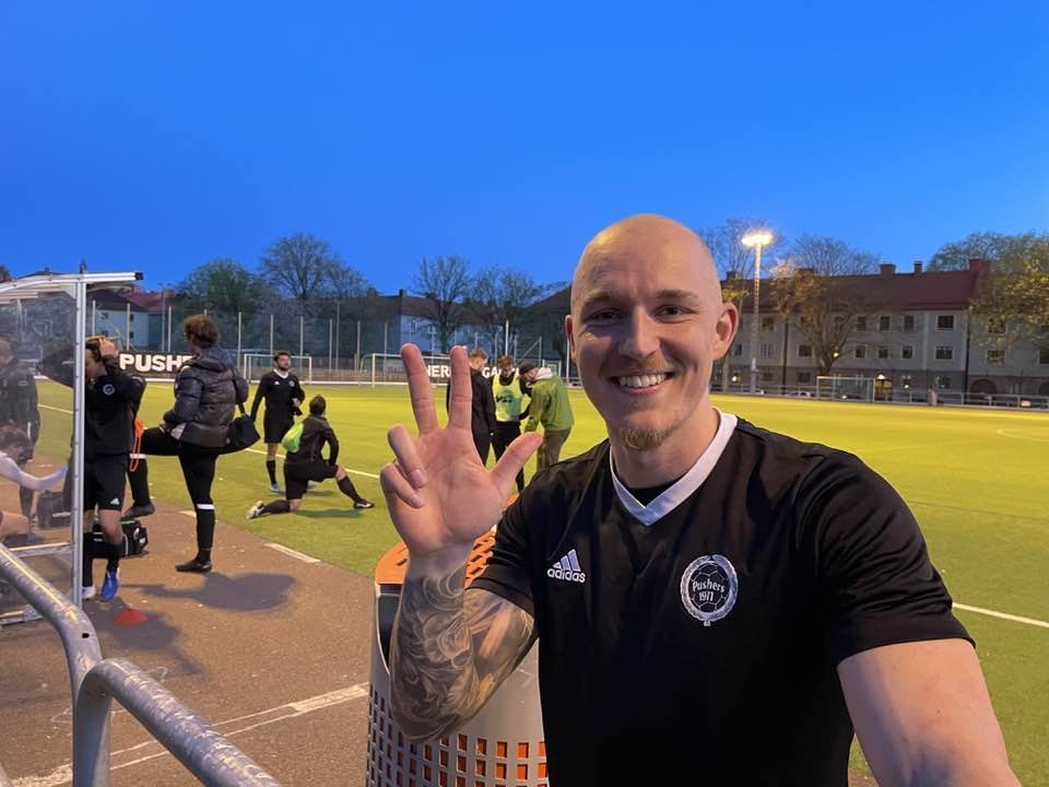 Efter en höst som hittills hade bjudit på stolpe ut var det ett revanschsuget Pushers som denna fredagafton trotsade trafikkaoset på E6:an på vägen ut till Kareby Hed. Har ni satt plattan i mattan i en teslabil någon gång? *Där* har ni känslan som präglade matchinledningen. Pusherskuggarna, både i presspelet och i passningsspelet, jackar i varandra mer eller mindre på direkten. Joel prickar ribban efter trettio sekunder. Och debuterande växjösonen Victor har efter ytterligare någon minut både hunnit med ett par furiösa överlapp från sin vänsterbacksposition och fått ett gult kort efter att — rätt så spektakulärt — hoppat upp och träffat motståndaren i huvudet med knät. (Det gick bra för honom.) Efter tio minuter spelade tråcklar sig Pushers fram centralt. Orkesterledaren Fred vänder upp och slajsar ut bollen på högerkanten där Dexter (också han debutant från start) kommer springandes. Med första tillslaget peggar han upp bollen på straffområdeslinjen, med andra stänker han in den i nättaket! 1-0 Pushers! Med kvarten kvar av första halvlek är det dags igen. Victor volleybryter på mittplan. Fred, som återigen tittar upp, trär fram en kvalitetspassning till Joel i högermittläge. Passar han? Eller skjuter han? Skitsamma, bollen seglar in i bortre och det står 2-0 Pushers! Knappt har domaren hunnit plita ner målet i sitt anteckningsblock förrän det är dags igen. Efter en upprullning där i stort sett varenda svart tröja är inblandad får Liam (ja det var mittbacken Liam, det) bollen felvänd vid straffområdeslinjen. Efter ett par höftmoves i hopp om att skaka av sig Karebyförsvararen spelar han en bredsida till Dexter ute på högerkanten som på ett slår ett överlångt inlägg till Joel i bortre delen av straffområdet. Joels nick räddas på ett magnifikt sätt av Karebymålvakten men inte bättre än att Andreas Munck kan springa in returen. 3-0 till Pushers! Innan domartrion går på halvtidsledigt hinner Pushers även göra 4-0, återigen genom Dexter. Målgesten? Vintage Mario Balotelli. En kvart in i andra är det dags för kvällens sista pushersmål. Victor driver upp bollen på vänsterkanten, och hittar fram till Ale. Ale avancerar mot mål och — med perfekt tajming — vinklar han ner den mot kortlinjen där Liam (mittbacken, ja!) kommer överlappandes. Inspelet i slottet är perfekt och Simons avslut likaså. Totaalvoetbal! Strax därefter gör Bilal en fantomräddning på straff efter att undertecknad fått den på handen. Till slut kommer ändå Karebys reducering och matchen slutar 5-1. Nästan omöjligt att dela ut poäng idag: Liam för en försvarsinsats som hade gjort Johan Cruyff stolt? Fred för att fotbollsplan är hans egna lilla schackbräde? Krisse för att han är lokalfotbollens kanske mest pressresistente ytterback? Joel för 1+1 och för att han fyller ut kaptensbindeln på exakt alla andra sätt? Eller till Karebys ledare som inför matchen fyllde våra vattenflaskor? Mja, denna gång går de till: 1 poäng - Victor - Det dröjde inte många minuter förrän man insåg: vilken värvning han gjort, sportchefen. Äger varenda kvadratmeter av den där vänsterkorridoren. 2 poäng - Andreas M - Otäckt bra på att använda sin balans, teknik och styrka för skydda boll. Blir fullkomligen ostoppbar när det kombineras med ett rappt passningsspel och ett aggressivt presspel. Målskytt. 3 poäng - Dexter - 16-åringen kliver in från start, och som han gör det. Kombinerar otröttliga löpningar i djupled med en närmast Salahesque vilja att alltid avsluta anfallen genom att sätta bollen i mål. Nanananaa, Dexter’s on fire, you’re defence is terrified! Alla till Valhalla! I morgon, lördag den 9 september, är det dags för seriefinal. Romelanda gästar och vi behöver allt stöd vi kan få för att minska gapet till serieledningen och höja spänningen ett snäpp inför höstens matcher. Kaffe, bullar och fint väder utlovas!