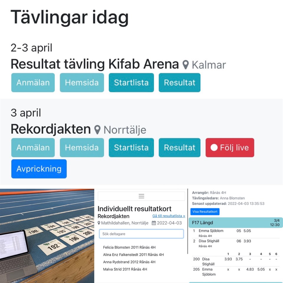 Rekordjakten, test av easyrecord inför Sparbankenspelen den 29 maj. Test av avprickning, rapportering, individuella resultatkort och följa tävlingen live. Bra test och fina resultat idag grattis till nytt hallrekord William Lindgren 5.91m i längd, det blev även pers av Malva Strid 3.84m och Anna Rydstend 3.74m. Grymt hoppat :-) nu laddar vi inför kommande tävlingar utomhus. https://www.easyrecord.se/result?l46XFF