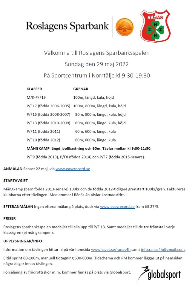Roslagens Sparbanksspelen den 29/5
