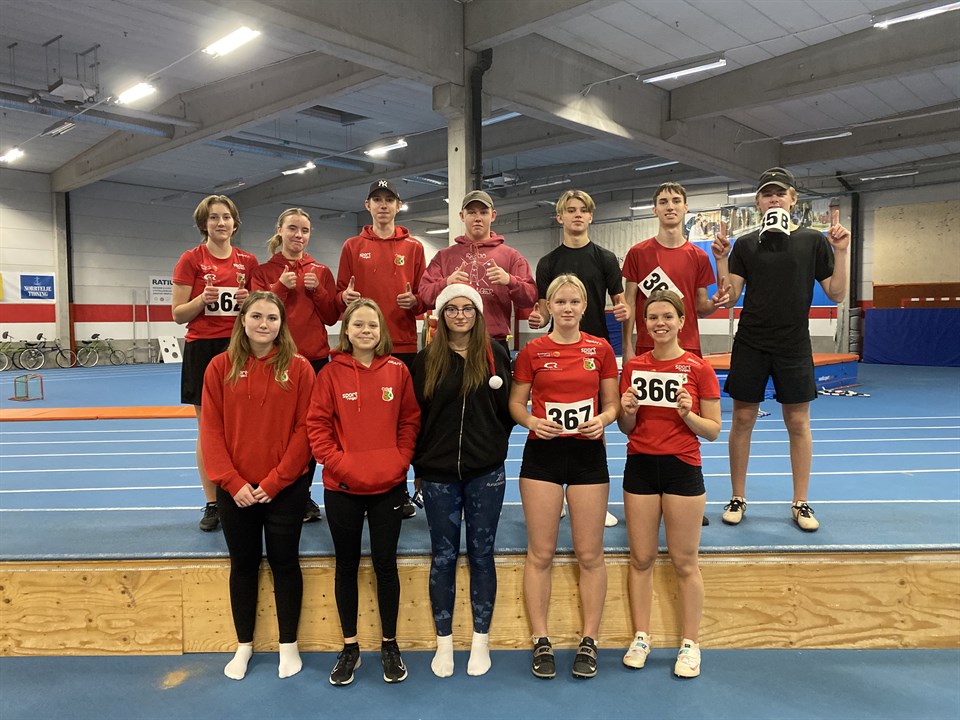 Sista tävlingen innan jul, återigen höjd, längd och kula. Nytt Mathildahallen rekord av Gabriel Mattsson som slog till med fina 1.70m i höjd, så nära att klara 1.73. Resultatet tog honom upp till plats 8 i Sverige i P16 Höjd. I längden fick vi flera fina resultat men extra kul för Lucas Vesterlund som tog sig över 5m för första gången, sen slutade det med att han slog till med fina 5.19 m så även han är uppe på Sverigelistorna i P16 (plats 20). Iris Bridell tog sig högre upp i listorna även om jag vet att hon inte är nöjd med 4.85, men med lite fler tävlingar så kommer snart 5m hoppet. Som avnlutning fick Gabriel även till med nya fina 11.24 i kula som tar honom upp på plats 3 i Sverige i P16. Resultat