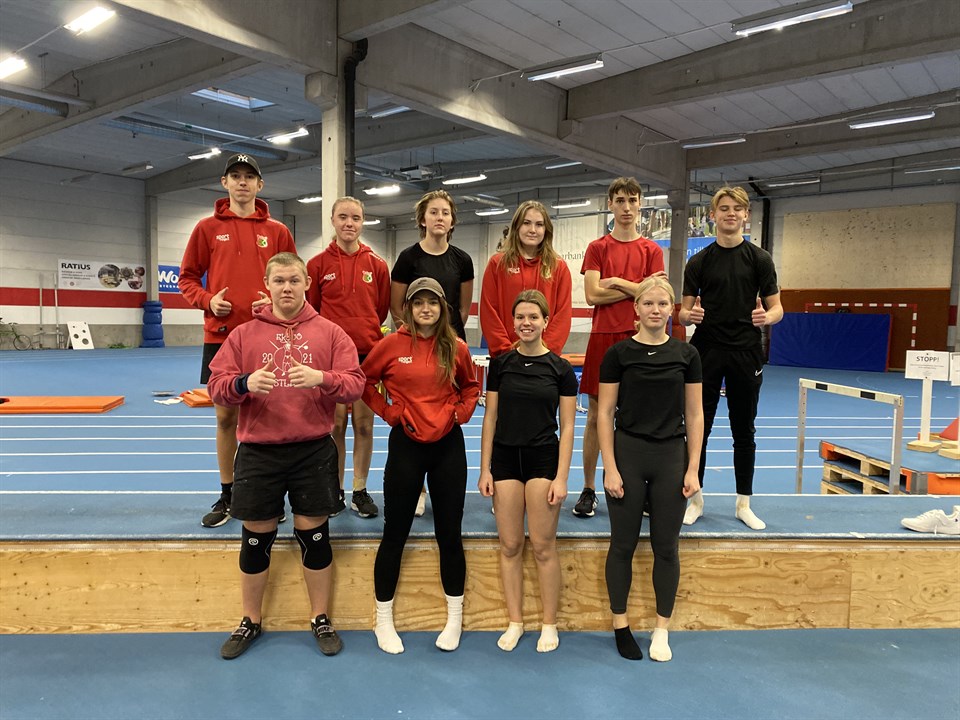 Nu är även inomhussäsongen igång för våran äldast träningsgrupp, för idag genomfördes vinterkampen 1. Kula, höjd och längd var grenarna för dagen. 8 aktiva valde att ställa upp och vi fick fina resulat trots att vi egentligen är i grundträningsperiod med intervaller och tung styrketräning som huvudfokus. Men det är klart att vi kan tävla lite också ;-) Många noteringar på Sverigelistorn blev det och fler tävlingar kommer vilken härlig start: Ludvig P19 - höjd 5:a William P17 - längd 9:a Gabriel P16 - Höjd 9:a, längd 6:a, kula 5:a Lucas P16 - kula 13:e, höjd 16:e Emma F17 - längd 1:a i SVERIGE Juni F16 - längd 4:e Lovisa B - höjd 12:e Iris F15 - längd 14:e Resulat