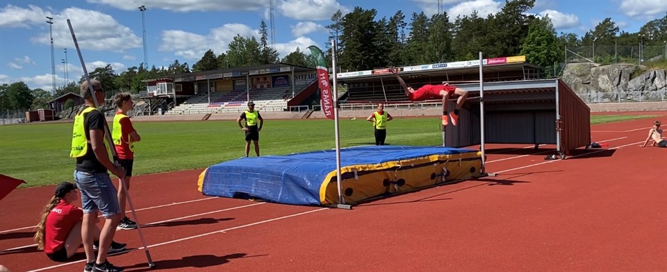 Sist ut utav resultatjakterna genomfördes på ett hett IP, som tur var fläktade det en hel del. Grenarna för dagen var diskus, spjut och längdhopp. I diskusen fick Gabriel och Bo till riktigt fina kast även om det kanske inte blev fullträffen, fina resultat in på Sverige listorna blev det som belösning. I Spjut var det Bo som fick till trycket i kastningen och slog till med fina 35.99m, även här kommer det bli en fin notering på Sverigelistorna :-) Sist ut och som extra gren var längdhopp, aningen svårhoppat då vinden blåst lite för mycket och för att få godkända PB och Sverielistan hopp så får det inte blåsa mer än +2.0. Som tur var hade deltagarna 6 försök att både få till plankträffen och vinden på rätt sida. Längst idag hoppade William som slog till i sista hoppet med fina 5.62m nytt fint PB. Gabriel hade lite otrur med plankan på sitt längsta hopp men fick med sig 5.29m. Juni och Emma fick båda godkända hopp över 5m i godkända vindar. Så här blir det många noteringar in på Sverigelistorna och nya fina personbästa för alla fyra. Länk till resultatet Målet är att få in fler resultat tävlingar under sommaren, de kommer läggas ut på Upplandsfriidrottförbund som öppna resultattävlingar men i mindre grupp.