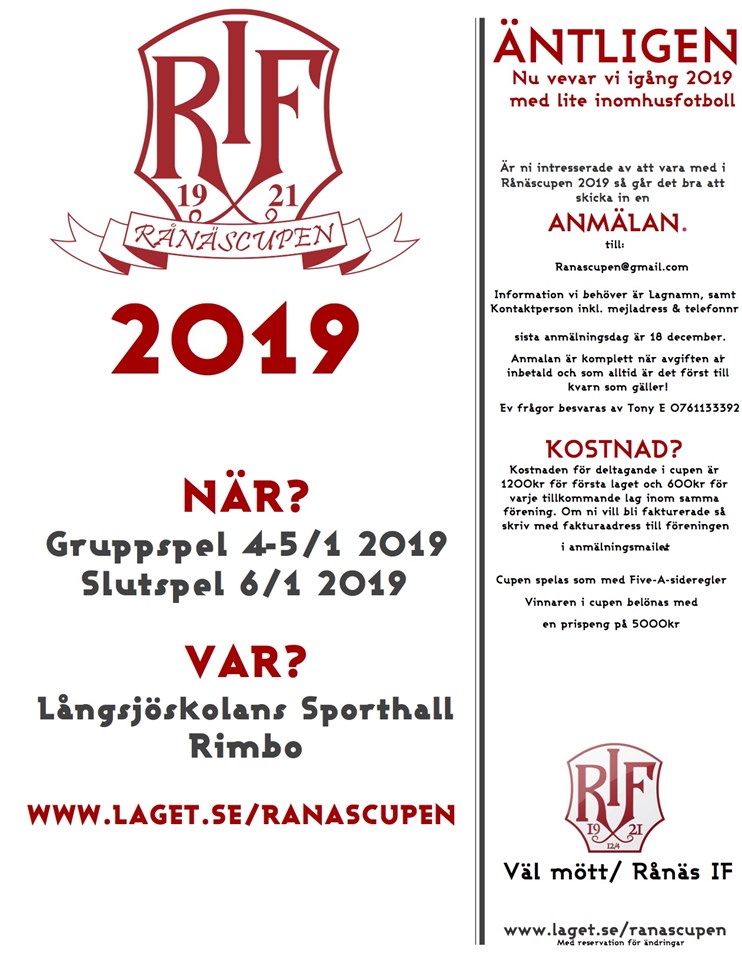 Då va anmälan stängd! Spelschema kommer ut till helgen! RånäsCupen 18 dec 2018 0kommentarer