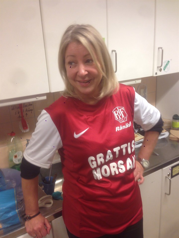 Rånäs IF är en av många föreningar i detta land som drivs av ideella krafter! Då behövs det eldsjälar som pysslar med saker runt omkring! Detta är Kicki, hon är en av dom som jobbar i det tysta (eller ja hon hörs när hon är på det humöret!) Kicki roddar kiosk både på RånäsCupen och till hemmamatcherna, hon sliter med sig nån stackare och åker på Rånäs bortamatcher, hon stökar när det ska anordnas Pubafton, hon har sett till så att det just nu finns två från nästa generation Karlsson i Rånäs trupp (kanske kan hon få en tredje att överge dataspelandet för fotbollen), hon har spelat i Rånäs damlag, hon har anordnat fotbollsskola uppe på IP och hon bemästrar konsten att slänga käft med glimten i ögat! Därför vill vi i RånäsCupen Crew tillsammans med Rånäs Herrlag vill så här en dag försent gratulera Kicki på hennes bemärkelsedag! (Hon fick ledigt igår!) hoppas tröjan är till belåtenhet! RånäsCupen 4 jan 2015 0kommentarer