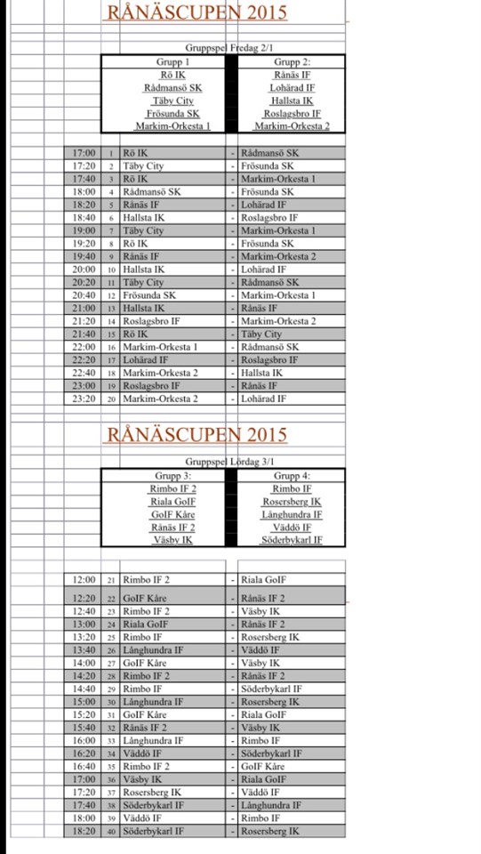 På bilden ser ni gruppspelet med alla tider för varje lag. God Jul på er! RånäsCupen 23 dec 2014 0kommentarer