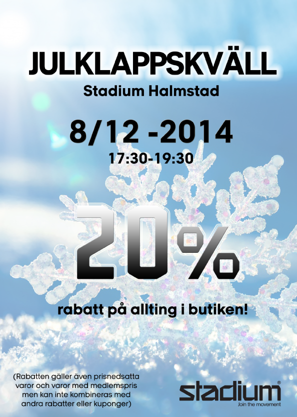 Julklappskväll på Stadium, Halmstad den 8/12 2014 för alla medlemmar i Ränneslövs GIF! Mellan 17:00-19:30 erbjuder Stadium 20% rabatt på allting i butiken. (rabatten kan ej kombineras med andra rabatter eller kuponger). Stöd din förening! En fantastisk möjlighet för dig som vill supporta en förening! Du kan ge din förening 3% extra i bonus genom att handla på Stadium. Självklart behåller du din personliga bonus. Alltså bonus till alla, på samma köp. Allt som krävs är att du är Stadiummedlem och registrerar dig på stadium.se/teamsales och där väljer vilken/vilka föreningar du vill stödja. Medlemskapet är kortlöst och kostnadsfritt.