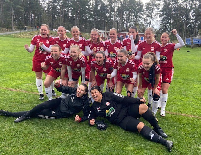 Matchreferatet: I matchen hemma mot Häverödal 2 på lördagen drog vi det längsta strået och slutresultatet blev 4–0 efter 2–0 i halvtid. Det var andra raka seger i serien efter 6–0 mot Funbo i premiären och fjärde raka med de två sista träningsmatcherna. Dagens vinst var en riktig lagseger där vi tar oss an den utmaning ett derby kan vara. Vi höll oss till den på förhand överenskomna spelplanen under nästan hela matchen. Vi spelade med hög press och hög intensitet med många bra anfall där flera chanser skapades. Vi dominerade bollinnehavet och kom fram på båda kanterna och centralt med ett varierat passningsspel. Kanske borde vi ha gjort ytterligare ett par mål sett till våra chanser med bl a 3-4 ramträffar. Samtidigt kom Häverödal till ett par vassa avslut där vår målvakt Eda fick bekänna färg, vilket hon gjorde med bravur. Vi tog ledningen efter en knapp halvtimmes spel, genom Tuva efter en inövad hörnvariant tillsammans med Hedda. 2–0 kom i 32:a minuten, genom Leia som kom rätt i straffområdet på en ”sib” från Celine. Med en dryg halvtimme kvar att spela gjorde Andrea en soloraid på ca 40 m och avslutade med att kallt sätta bollen i nätet bakom motståndarnas målvakt. I 79:e minuten kom Leia fram på vänsterkanten och gjorde 4–0 på ett långskott, vilket fastställde slutresultatet. I den 82:a minuten blev Mira utvisad i sitt försök att stoppa en framrusande Häverödalspelare. Det innebar att vi fick spela de sista åtta minuterna med en spelare mindre, vilket i sin tur innebar att vi fick möblera om i laget. Söder klev in som mittback och Vickan gick ner från anfall till yttermittfält. Trots en spelare kort spikar vi igen och släpper inte in motståndarna i matchen. Sammanfattningsvis är vi mycket nöjda med dagens prestation. Alla lagdelar tar ett stort ansvar och alla spelare visar hög arbetsmoral, mod och vinnarattityd. Det var en rättvis seger som blir komfortabel tack vare alla spelares fina insats. I nästa omgång har vi Jomala borta på Vikingavallen, lördag 18 maj 15.00.