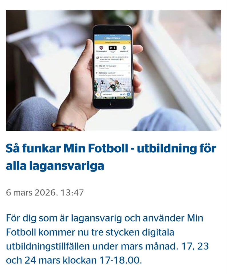 | Utbildningsvecka Fotboll | 4 maj, 17:00 |